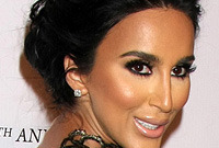 Lilly Ghalichi has a thin oval shaped face, which is highlighted here by her upswept hairstyle. Lilly has balanced out the thinness in her face by creating a voluminous updo. This elegant and sophisticated hairstyle is perfect for formal events and can be created by using a lot of backcombing at the roots and curls throughout the lengths and ends to get that big volume and lift throughout. The hair is swept to the back and pinned into place loosely, giving this hairstyle a soft and voluminous finish. This is a great technique to add width to a thin face.